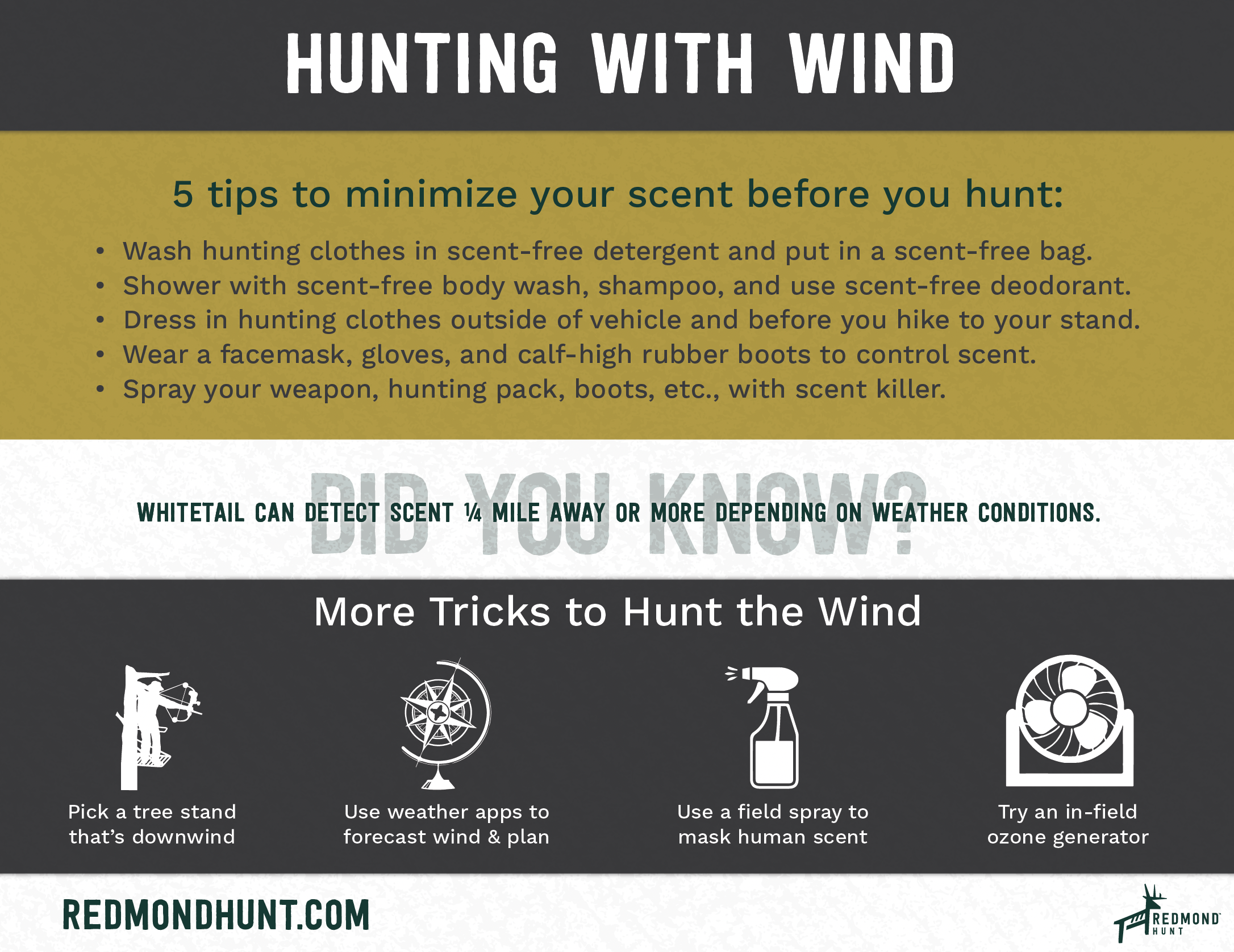 These tips on how to hunt the wind come from Kirt Connelly, a seven-year veteran of Redmond Hunt. Besides his family, the outdoors is Kirt's passion and what he loves and lives for. It led him into the outdoor industry early in his career where he worked as a hunting consultant. He also owned several companies before joining Redmond. Kirt brings the same passion to customers through Redmond’s quality deer mineral products and hunting services.